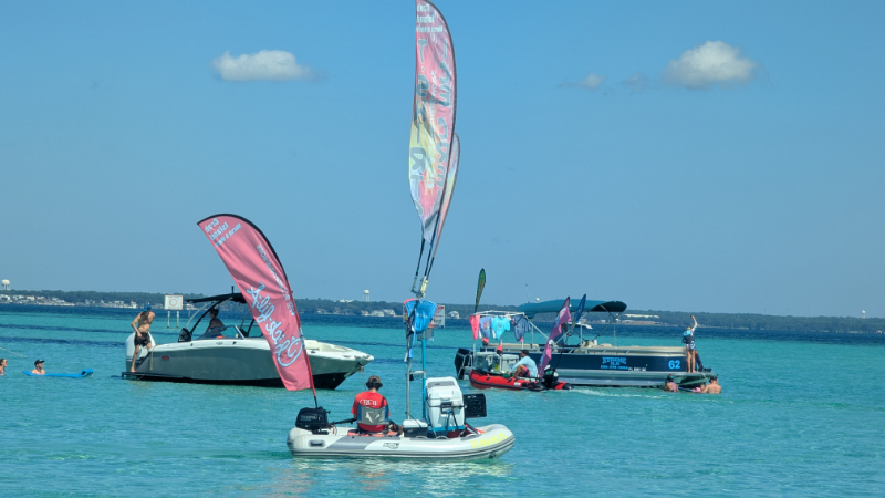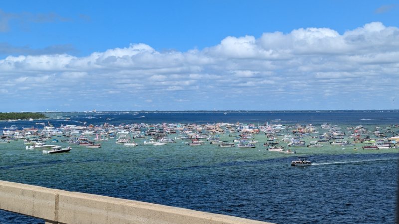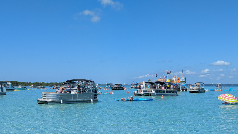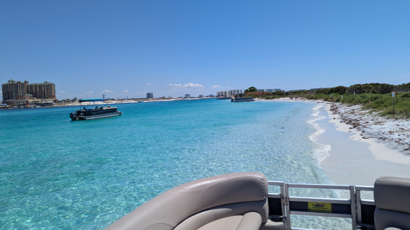 Crab Island is a submerged sandbar next to the Destin Bridge and is a popular spot for boaters. The only way to get there is by boat. (There’s a whole website if you want to learn more about it.)