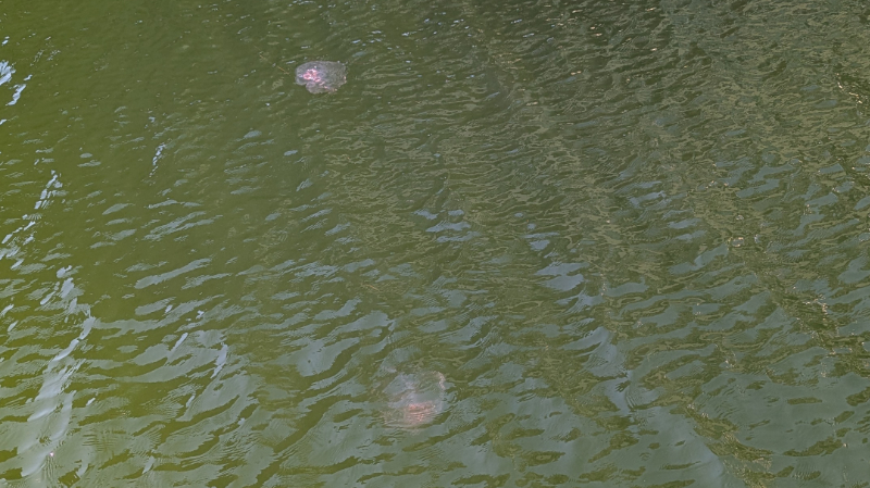 The thing that surprised us the most was the jellyfish! We first saw them from the boat during the dolphin cruise. At about 12 inches across, they were much bigger than any I’d seen before. We had to watch for them while we were swimming at Crab Island and get out of their way when they came through. Fortunately, there weren’t too many, they’re pretty slow, and the water is so clear they’re not difficult to spot.