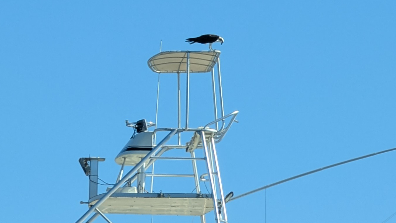 While we were waiting for the dolphin cruise boat to leave, we spotted this osprey on top of a nearby boat enjoying a fish he caught.