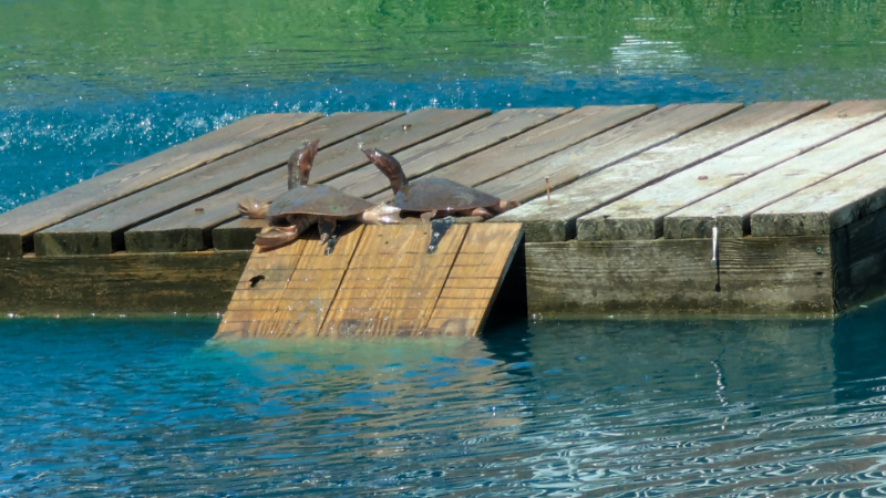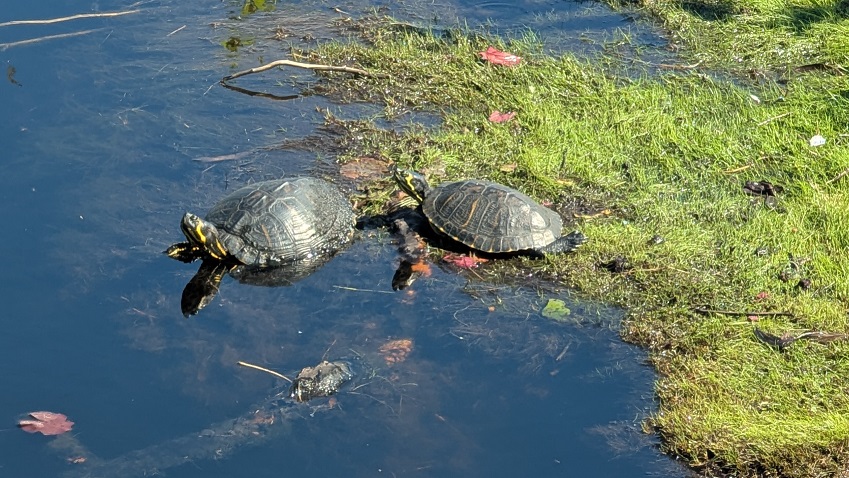 I was very excited to spot these softshell turtles on the dock in the campground pond.
