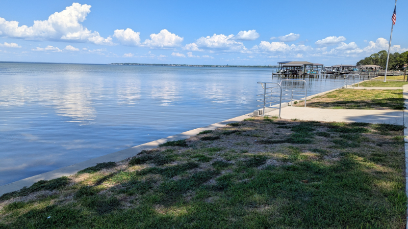 Someone also told us about a place called Legion Park. It’s only a 5-minute drive from the campground. It’s on the bay side, but dogs are apparently allowed to use the boat ramp. We stopped by without the dogs to check it out.