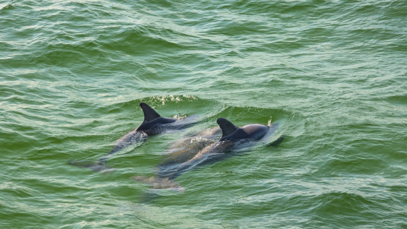 We took a dolphin cruise with a company called Southern Star. You check in at their booth on the Destin Harbor Boardwalk. (Check-in is at a booth near Margaritaville, at the same place you check in for the Buccaneer Pirate Cruises.)