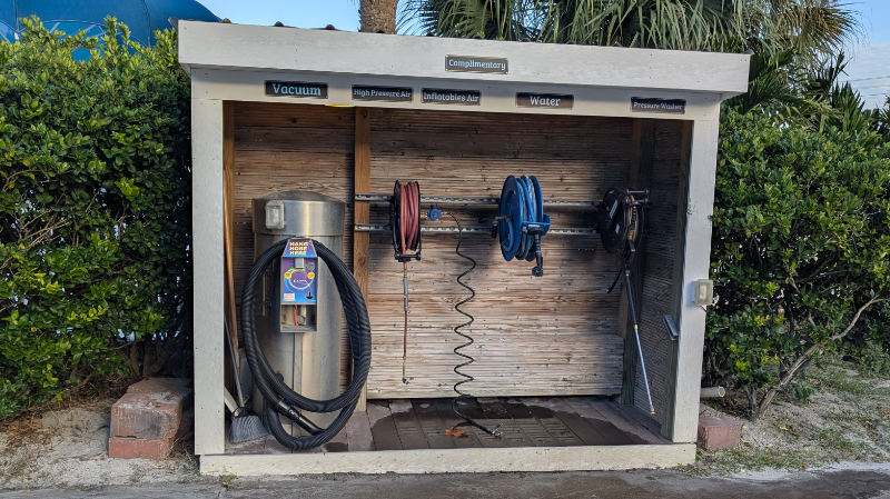 Near the front of the campground, they have an air station (for lack of a better word). There’s high-pressure air, air for inflatables, a vacuum, water, and pressure water.
