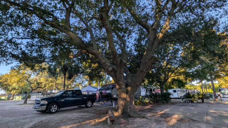 There are some beautiful trees on the property, so some parts of the campground have pretty decent shade. Some of those sites are also fairly spacious, especially for a campground on the beach.