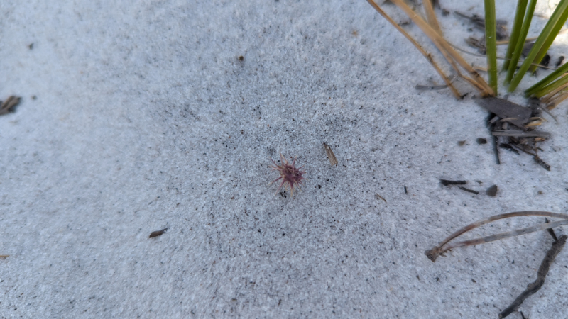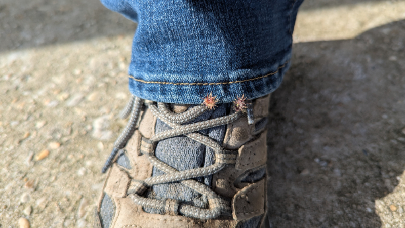 Corona was unlucky enough to find two of these spiky plant things during our hike. We were walking through the sand when all of a sudden she started limping. I felt around in her paw pads and found these. After we got back to the RV, I noticed I had picked up a few on my shoes. I don’t know what the plant they come from looks like, so all I can do is say keep an eye on your pups while you walk.