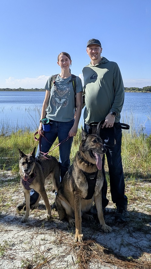 Jesse and I aren’t fond of being in pictures, but we took the opportunity to get a photo of the four of us together. Our selfie game needs some work. The dogs aren’t used to us standing behind them. We took a few, but in the one where we look the most normal, the dogs are looking up and away and anywhere but at the camera. We’ll do better next time!