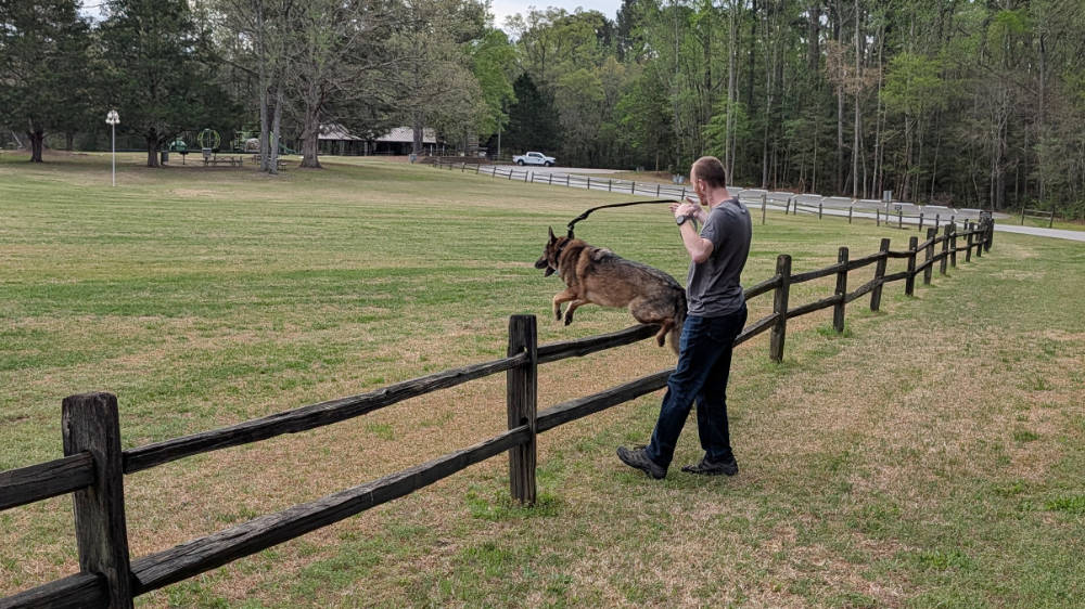 On a whim, Jesse casually asked Aiken to keep going when he was pointed at this fence. We were quite surprised when he actually jumped it!