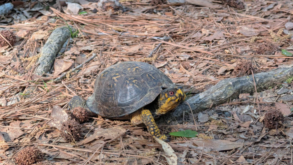 Aiken and I found this lovely box turtle in the middle of the trail as we passed. Aiken never even noticed him. I can’t blame him, though; this guy seems easy to miss if you’re not paying attention.