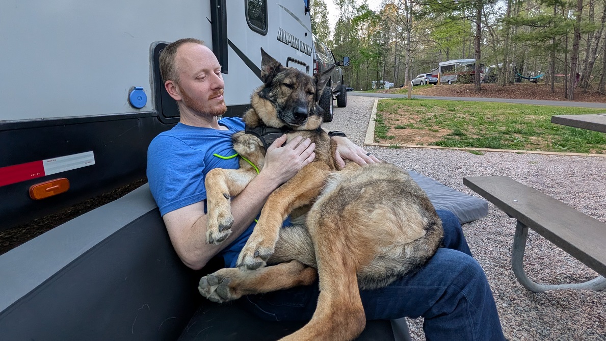 Late last year, Jesse and I got into running. Jesse was planning on a longer run fo the morning, so he left for his run while Corona, Aiken, and I went for Corona’s birthday hike. Afterward, I left Corona on a soft bed in the RV with some high-value treats and took Aiken for a run. (Keep in mind when I say “run,” you’re probably picturing a much faster pace than what actually happens. “Jog” is probably a better term for what I do.)