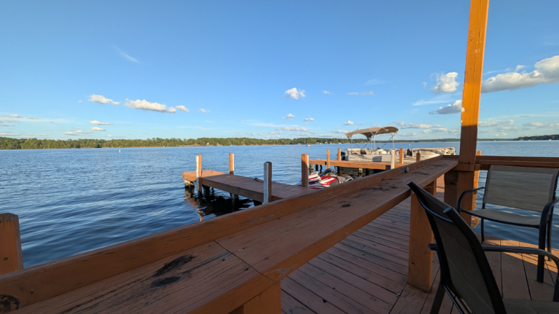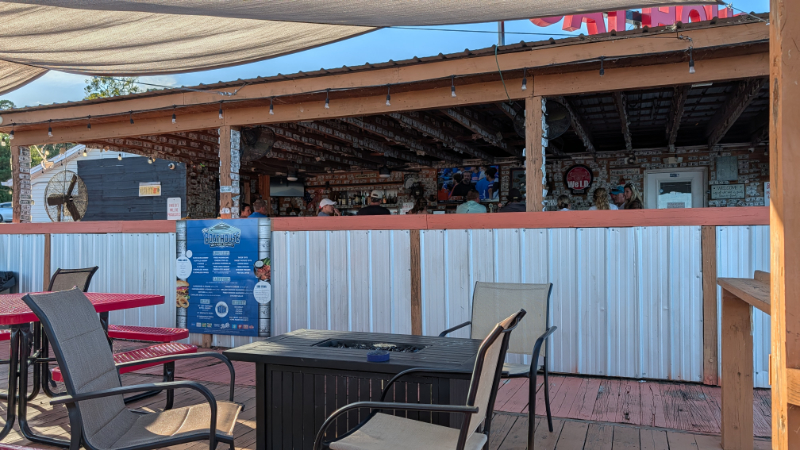 The second was the dock with boat slips and a fuel pump. While we were eating, we watched a group of people (and one dog) pull up in a pontoon boat, dock in a boat slip, fuel up the boat, and then head to the outdoor bar. Seems like a pretty smart business plan to have boat slips and a fuel pump if you’re on a lake like this.